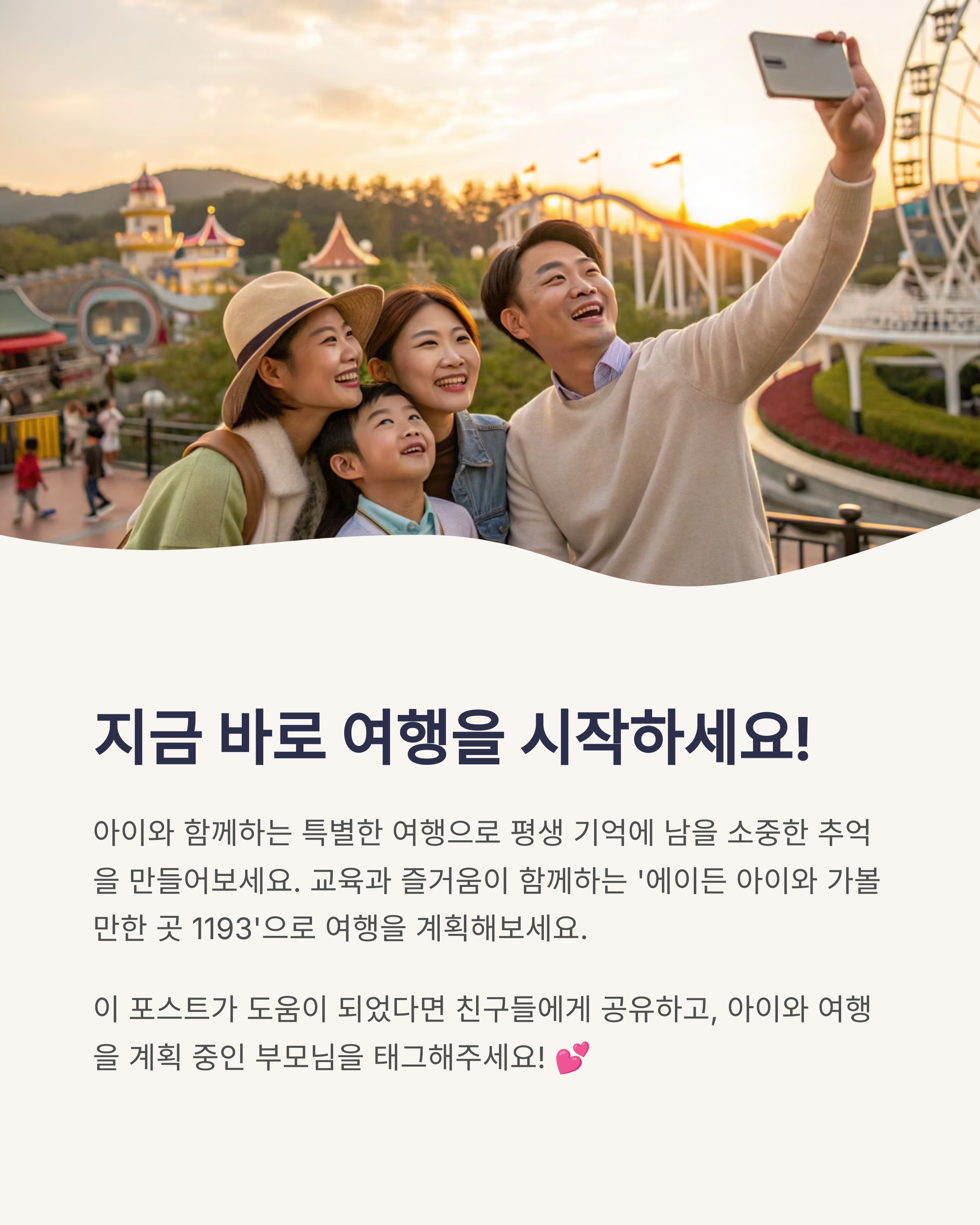 소중한 추억과 배움의 시간이 될 거예요. 부모님과 아이 모두에게 행복한 여행이 되길 바랍니다!